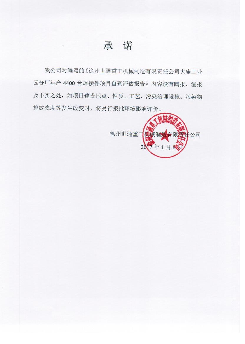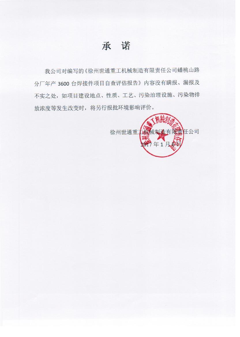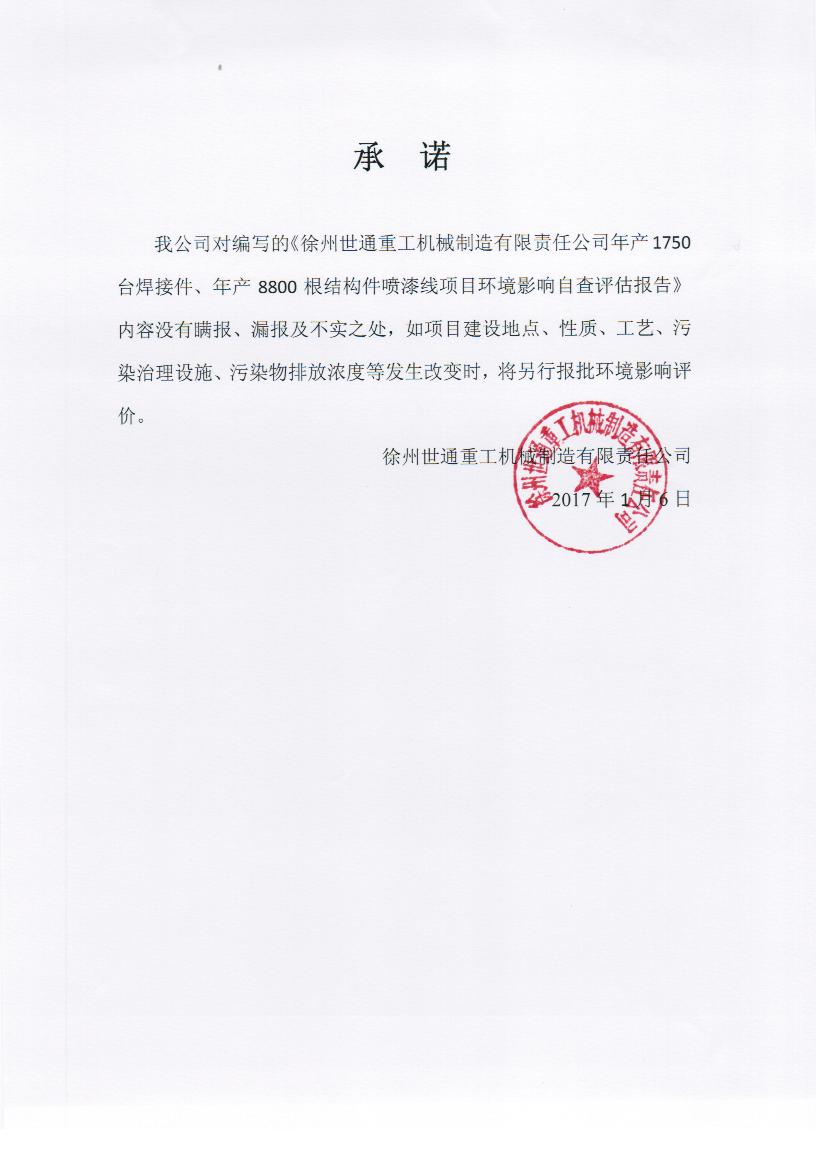 關(guān)于徐州世通重工機(jī)械制造有限責(zé)任公司自查評(píng)估報(bào)告及承諾書(shū)的公示