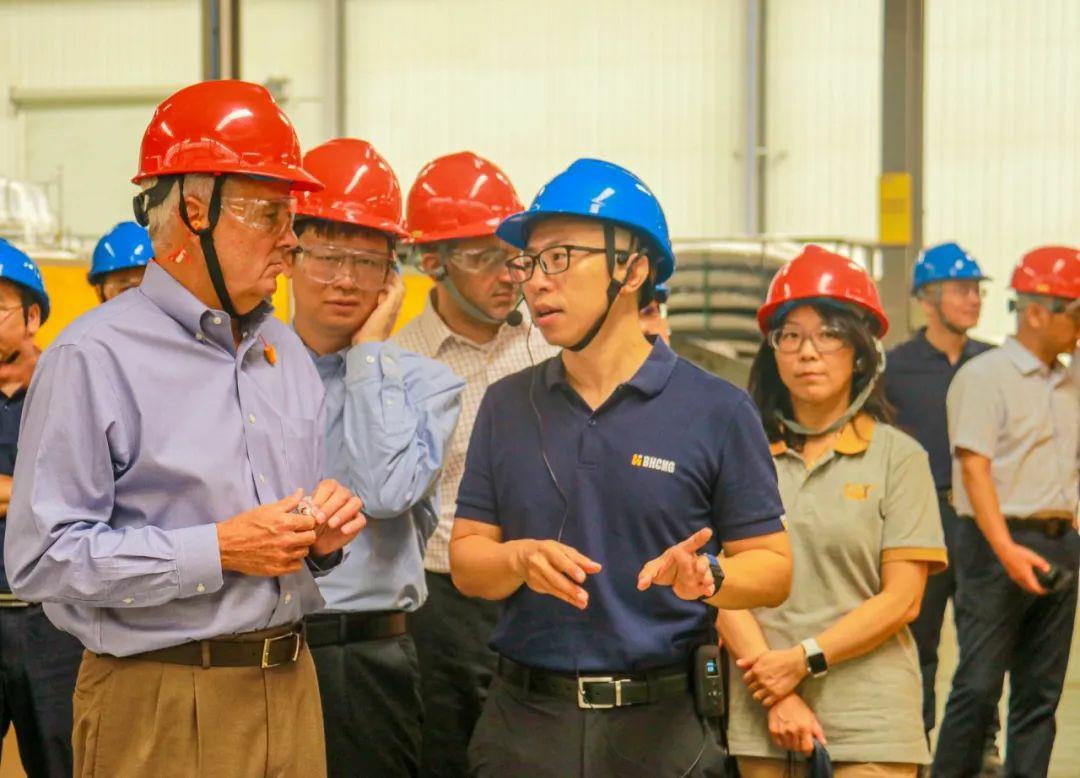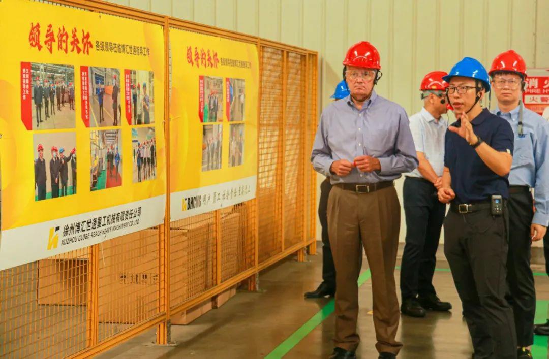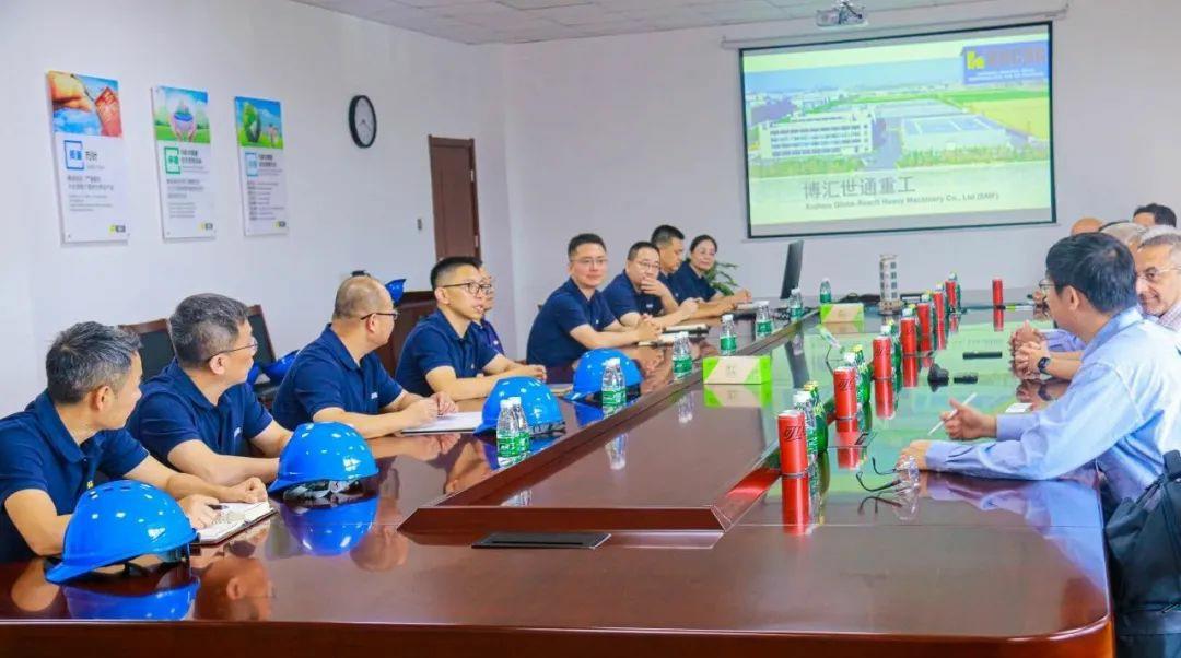 8月1日,卡特彼勒液壓挖掘機(jī)全球高級(jí)副總裁Tom Frake、卡特彼勒全球高級(jí)副總裁楊程建、卡特彼勒液壓挖掘機(jī)首席財(cái)務(wù)官Sandeep Virmani、卡特彼勒挖掘機(jī)全球采購(gòu)經(jīng)理Frank Li等一行7人到博匯世通東環(huán)廠區(qū)參觀訪問(wèn)。博匯集團(tuán)董事長(zhǎng)付健、公司董事長(zhǎng)兼總經(jīng)理付子一等領(lǐng)導(dǎo)陪同。